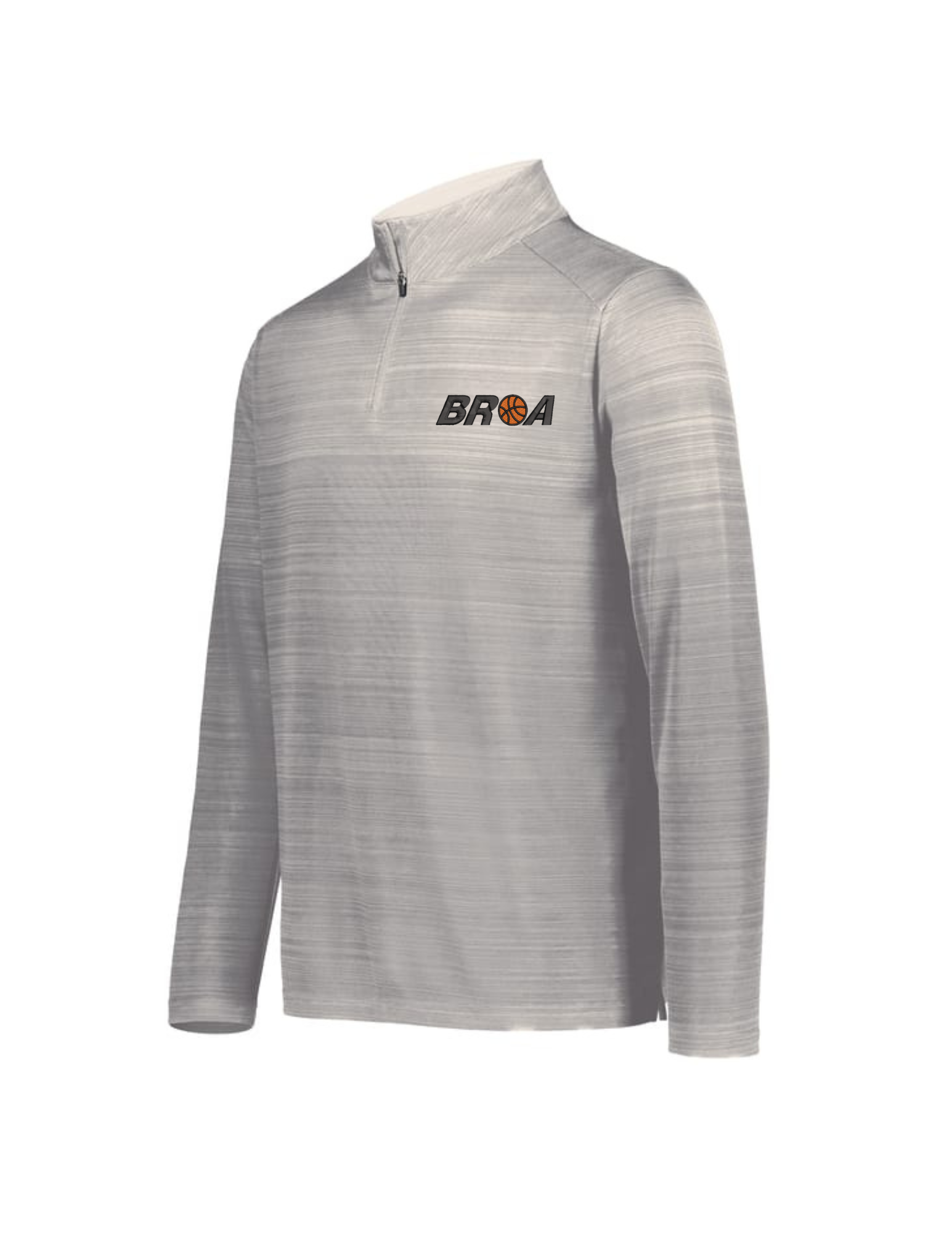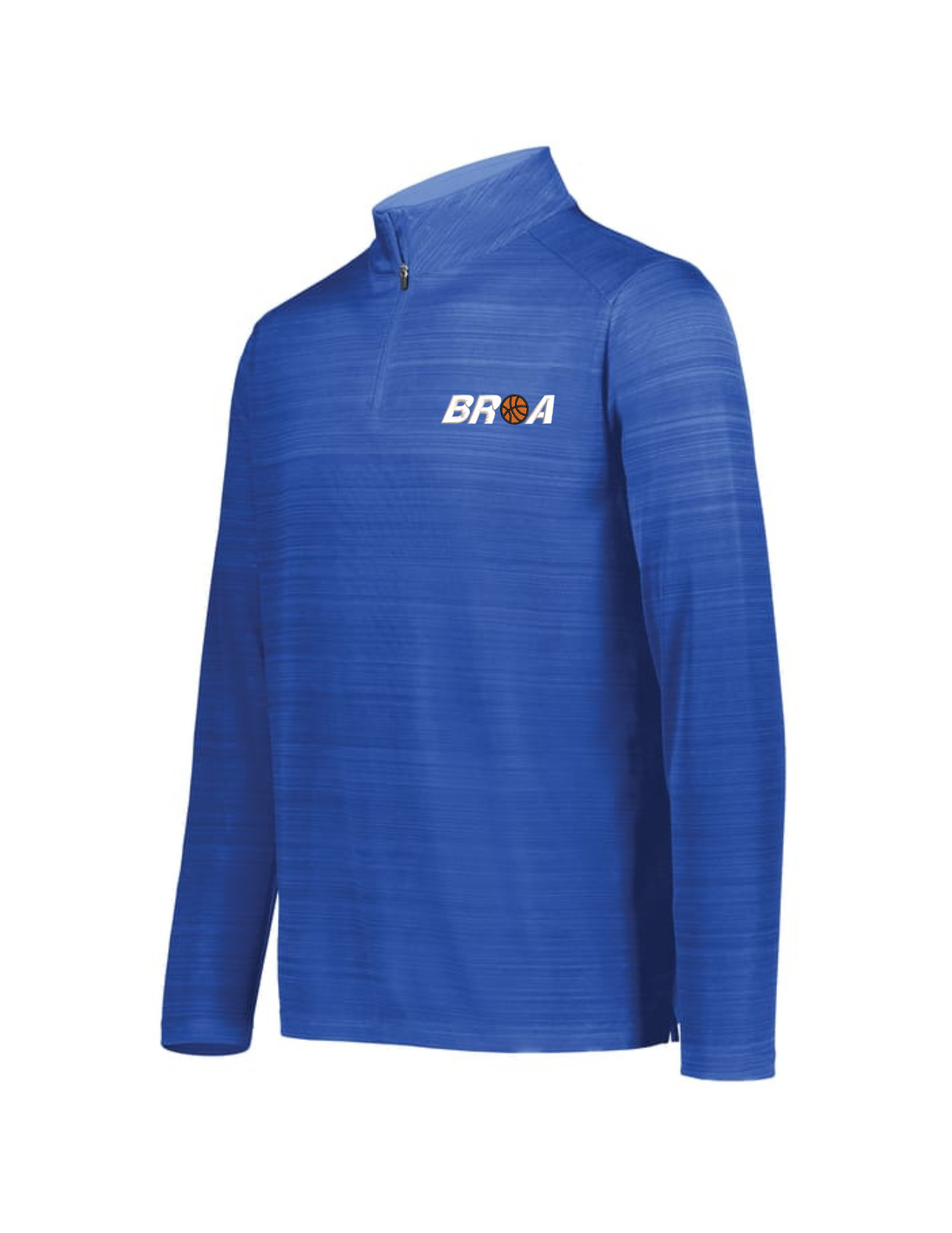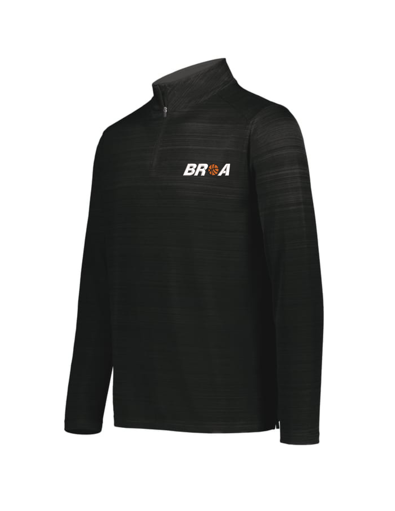 Polyester knit pullover with tonal stripe detail, moisture-wicking fabric, and a quarter-zip design built for team training.