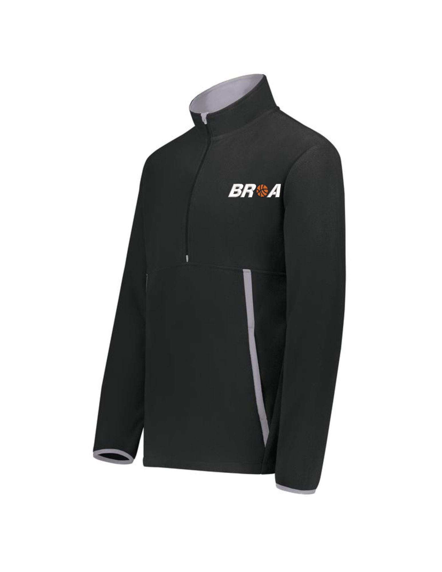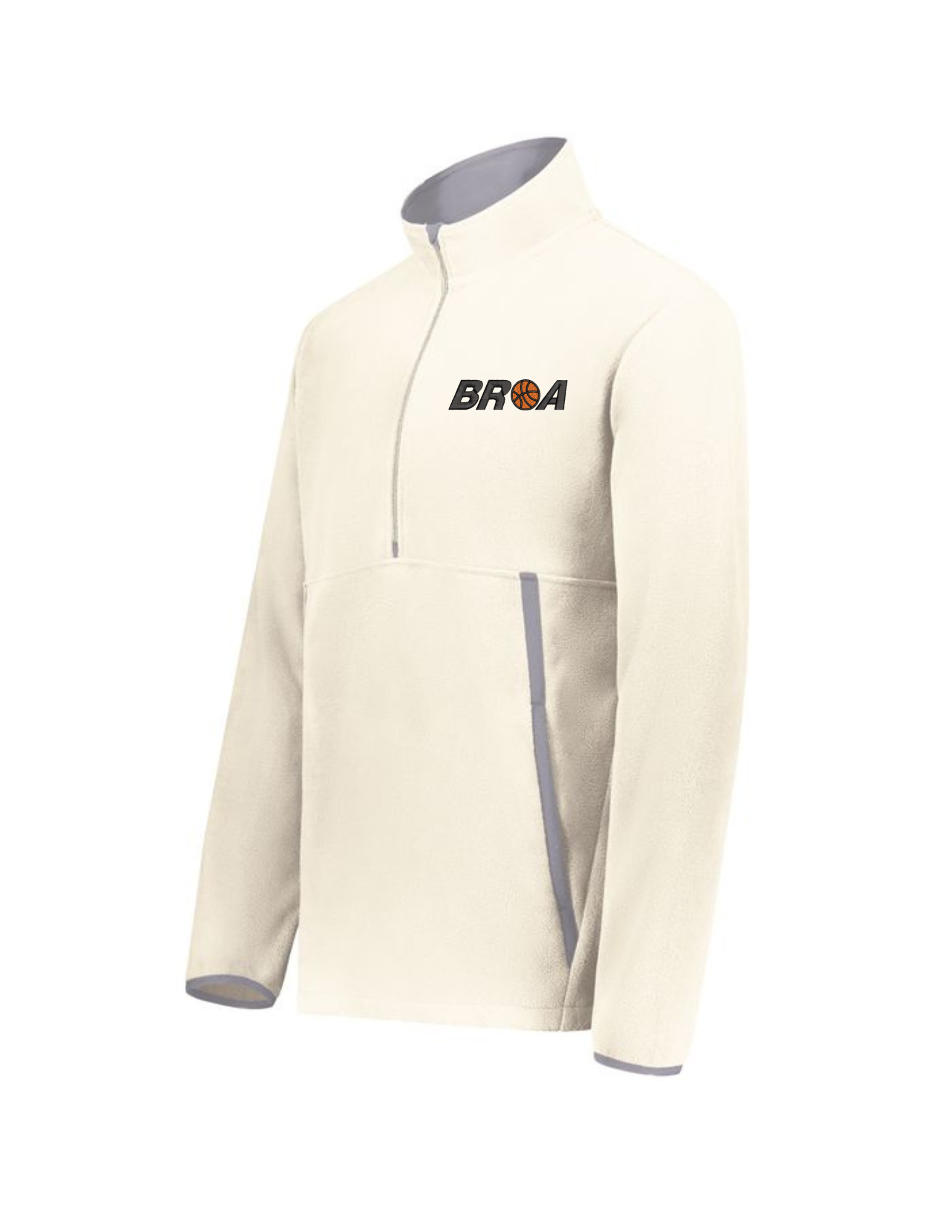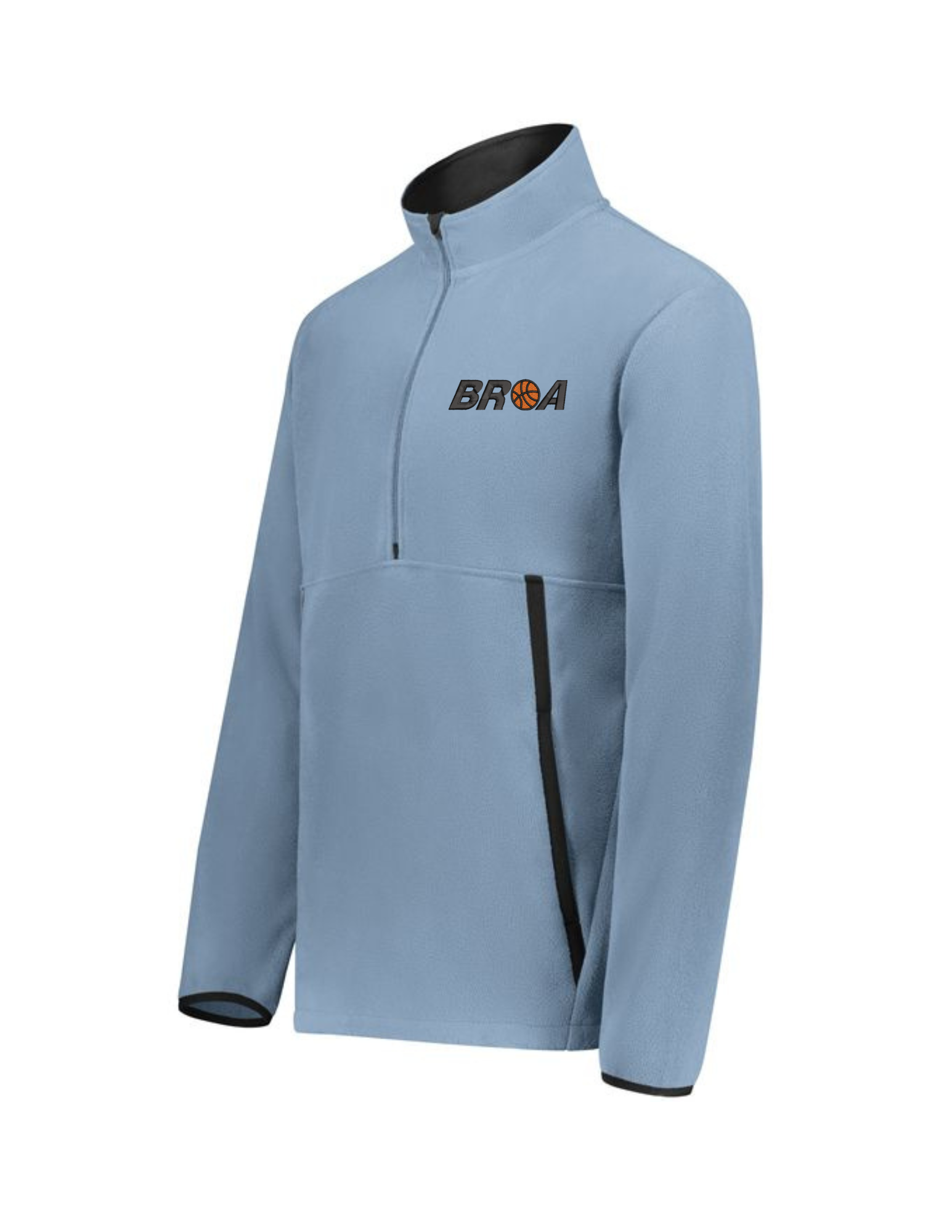 Eco-Revive® fleece pullover with half-zip closure and spandex binding for a secure, warm fit.