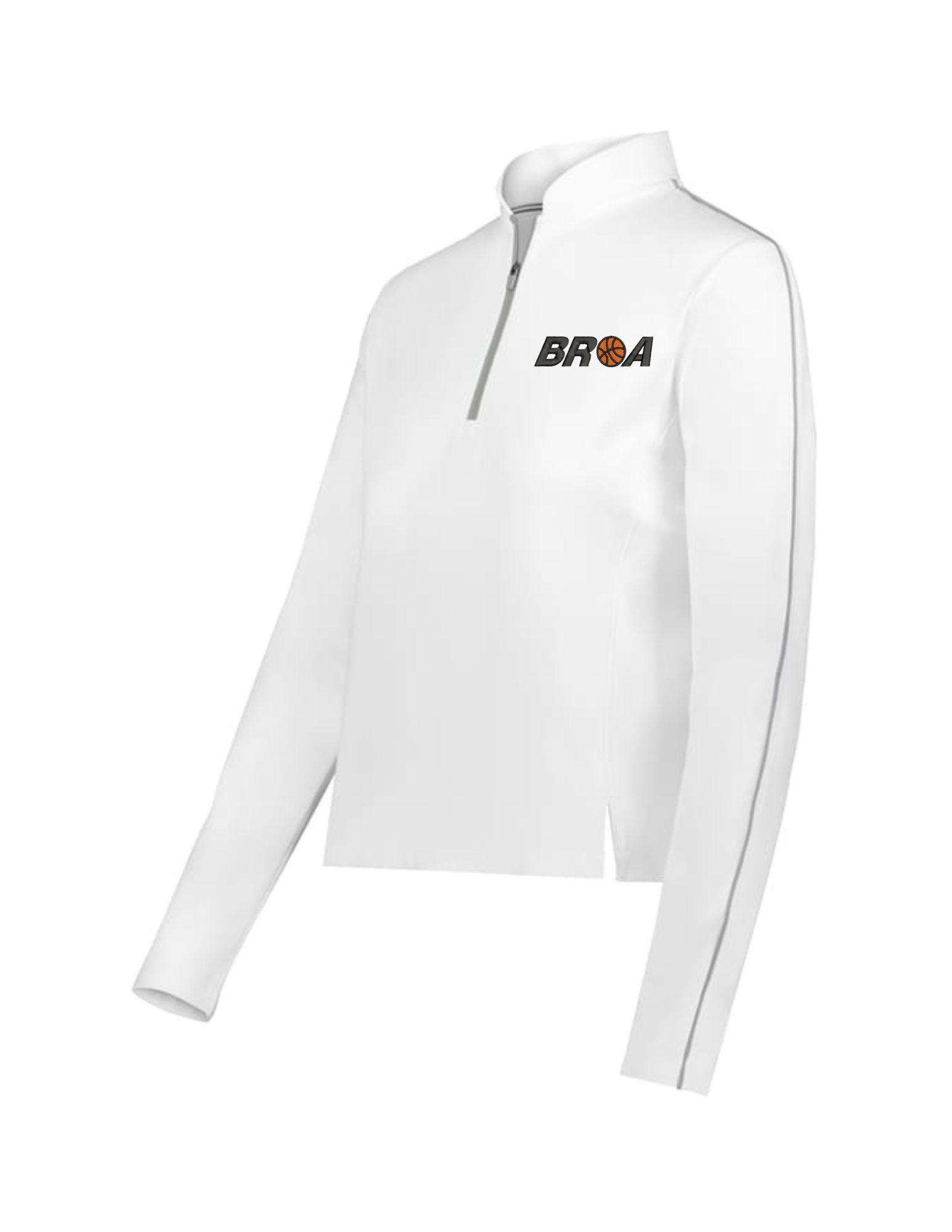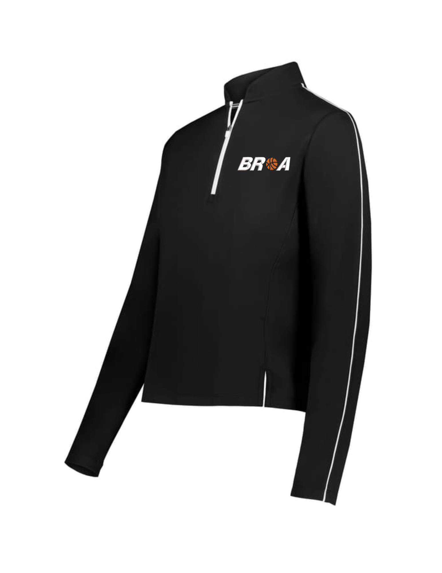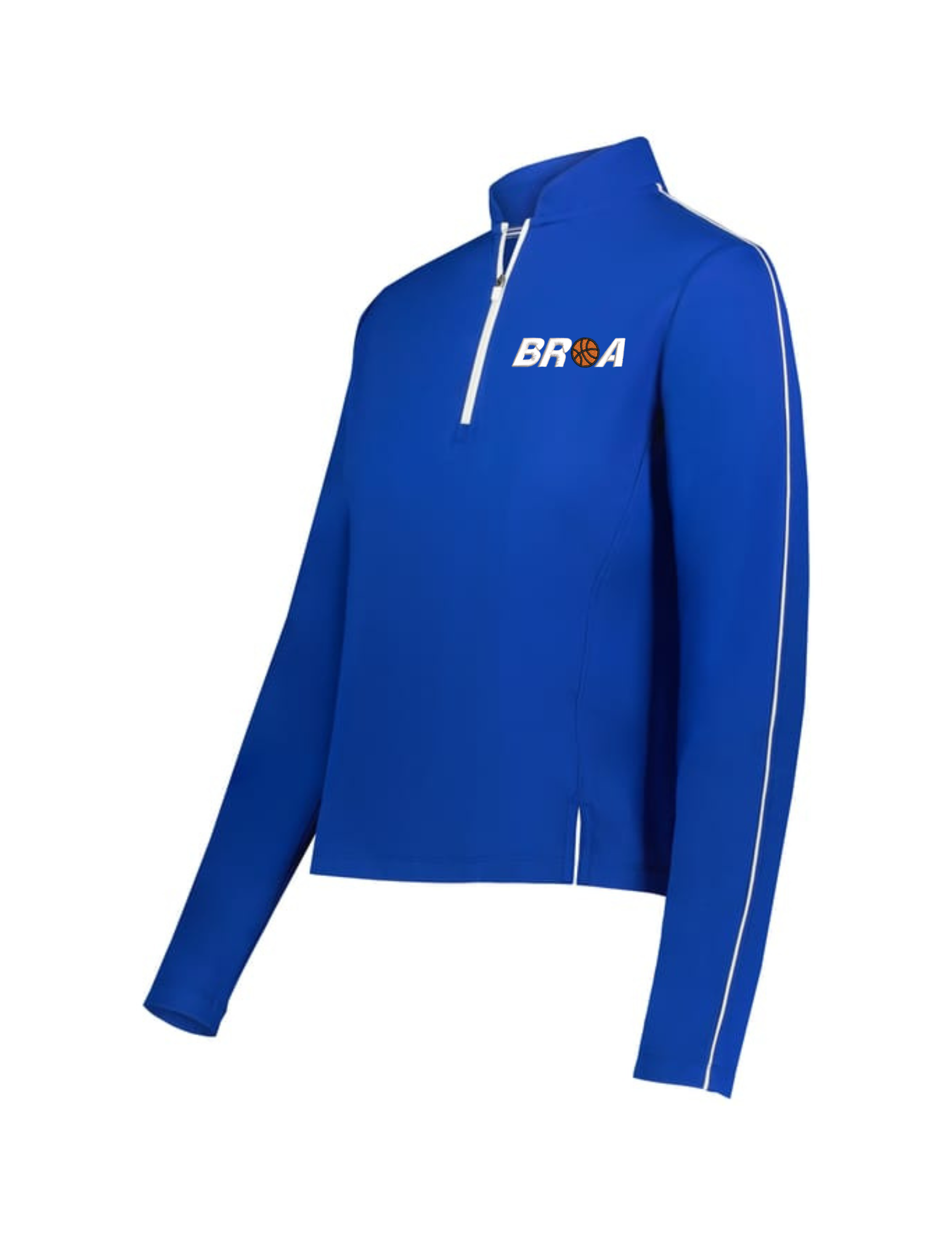 Eco-Revive ladies' stretch pullover designed with a modest cropped fit, contoured bottom, and moisture-wicking performance for multi-sport training.