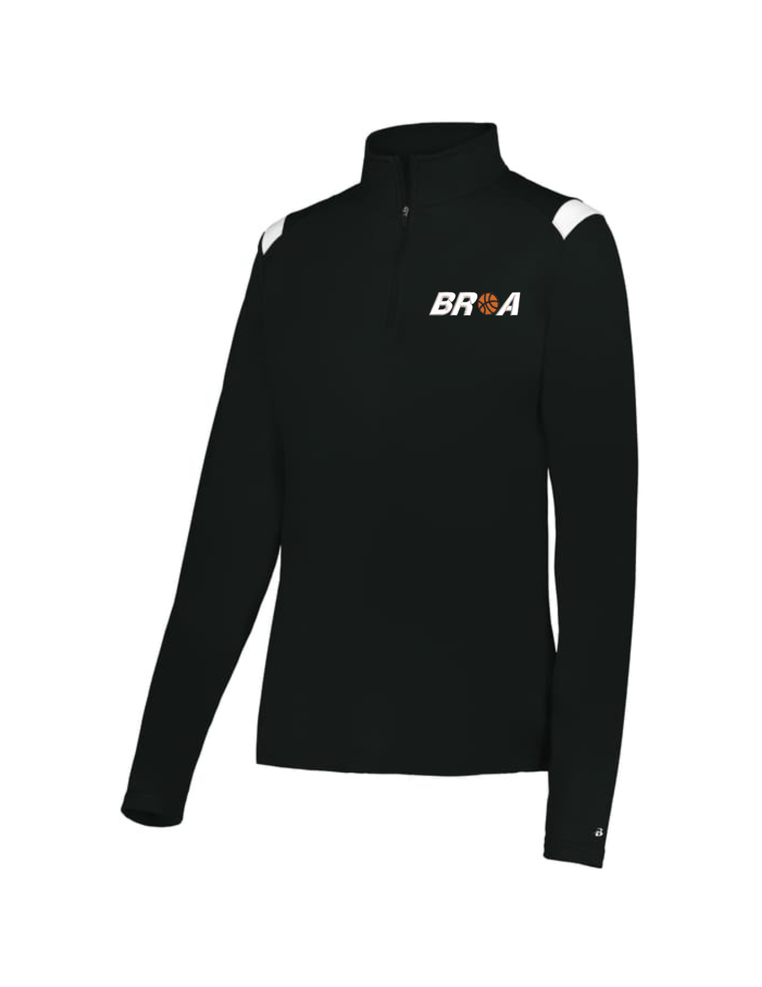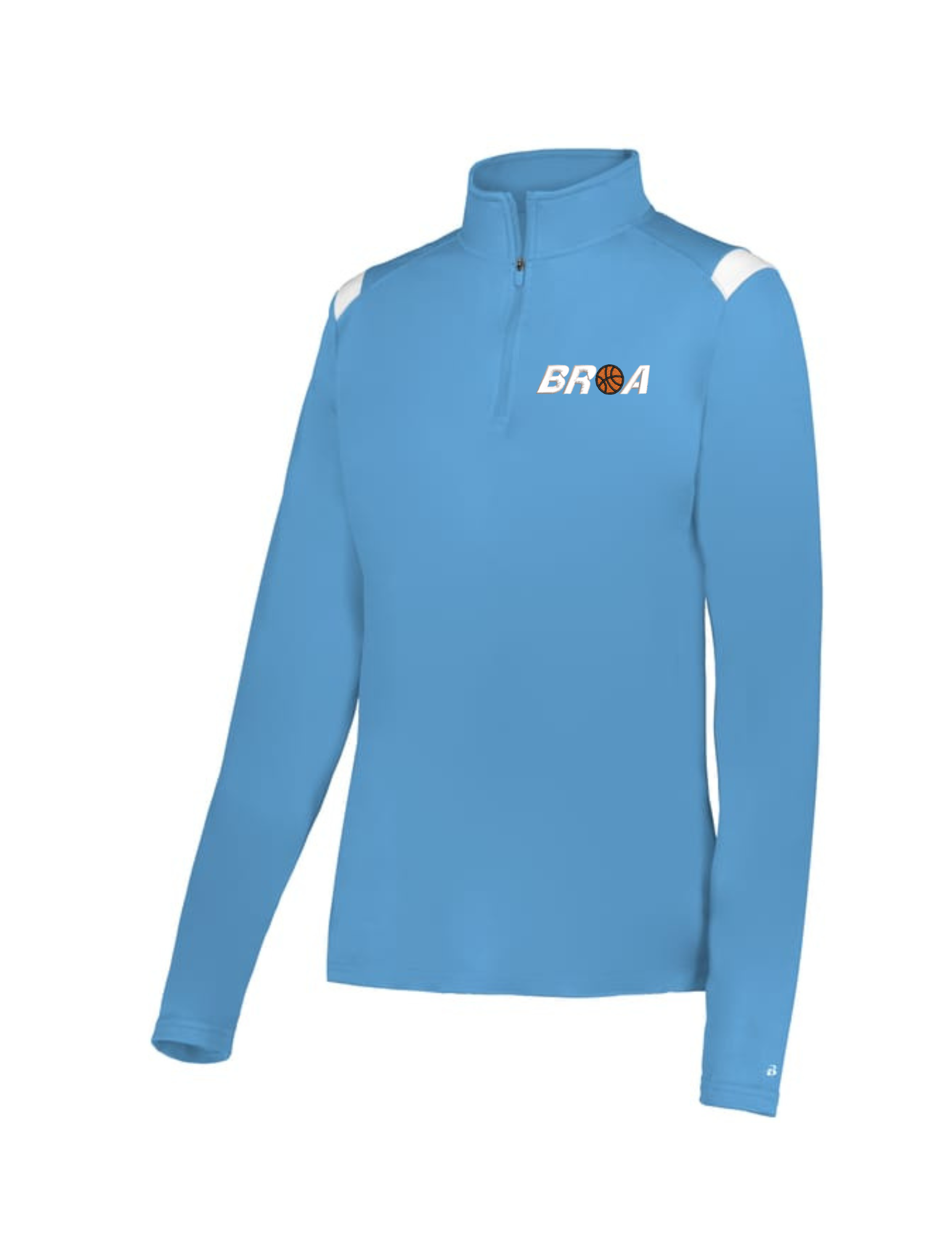 A lightweight ladies' quarter zip built for teams, featuring moisture-wicking fabric and forward shoulder seams for comfort and mobility.