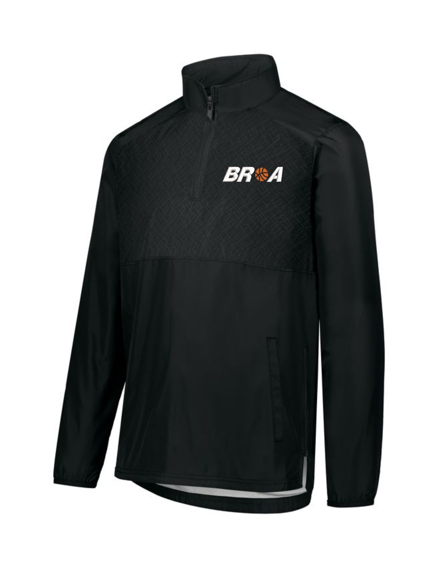 Quarter-zip pullover with wind and water-resistant Micron™ polyester, subtle embossed inserts, and lined interior for all-season use.
